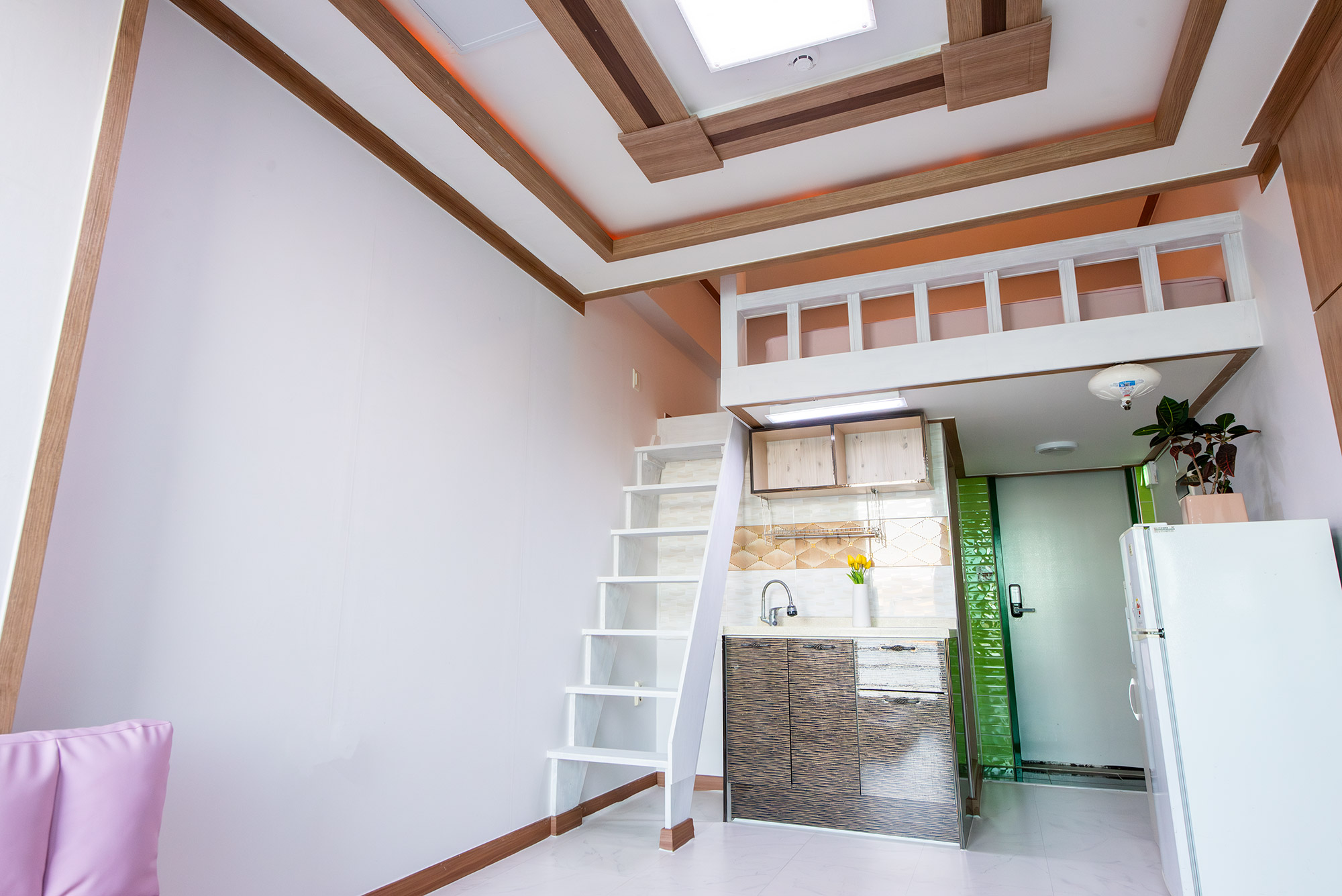 바로앞 바다가 보이는 원룸 형태의 커플형 복층입니다.
