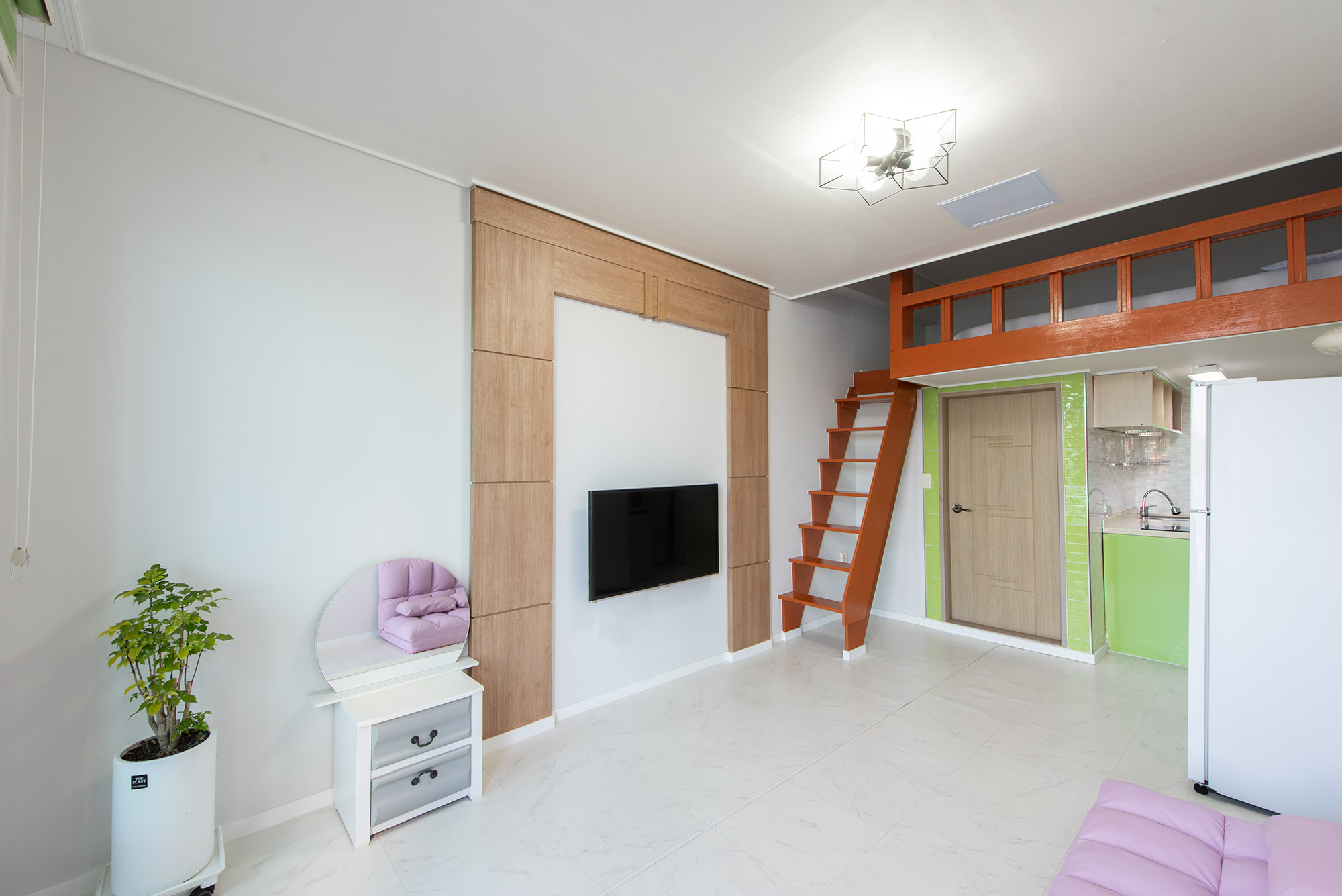 바로앞 바다가 보이는 원룸 형태의 커플형 복층입니다.
