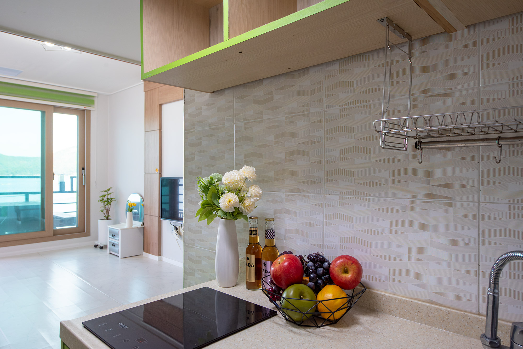 집기시설 : 침대, TV, 식탁, 주방식기류, 냉장고, 인덕션, 전기밥솥, 에어컨, 욕실용품, 옷걸이, 커피포트, 개별테라스