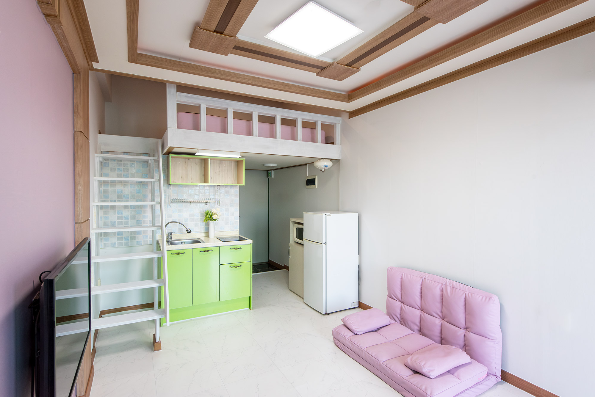 바로앞 바다가 보이는 원룸 형태의 커플형 복층입니다.