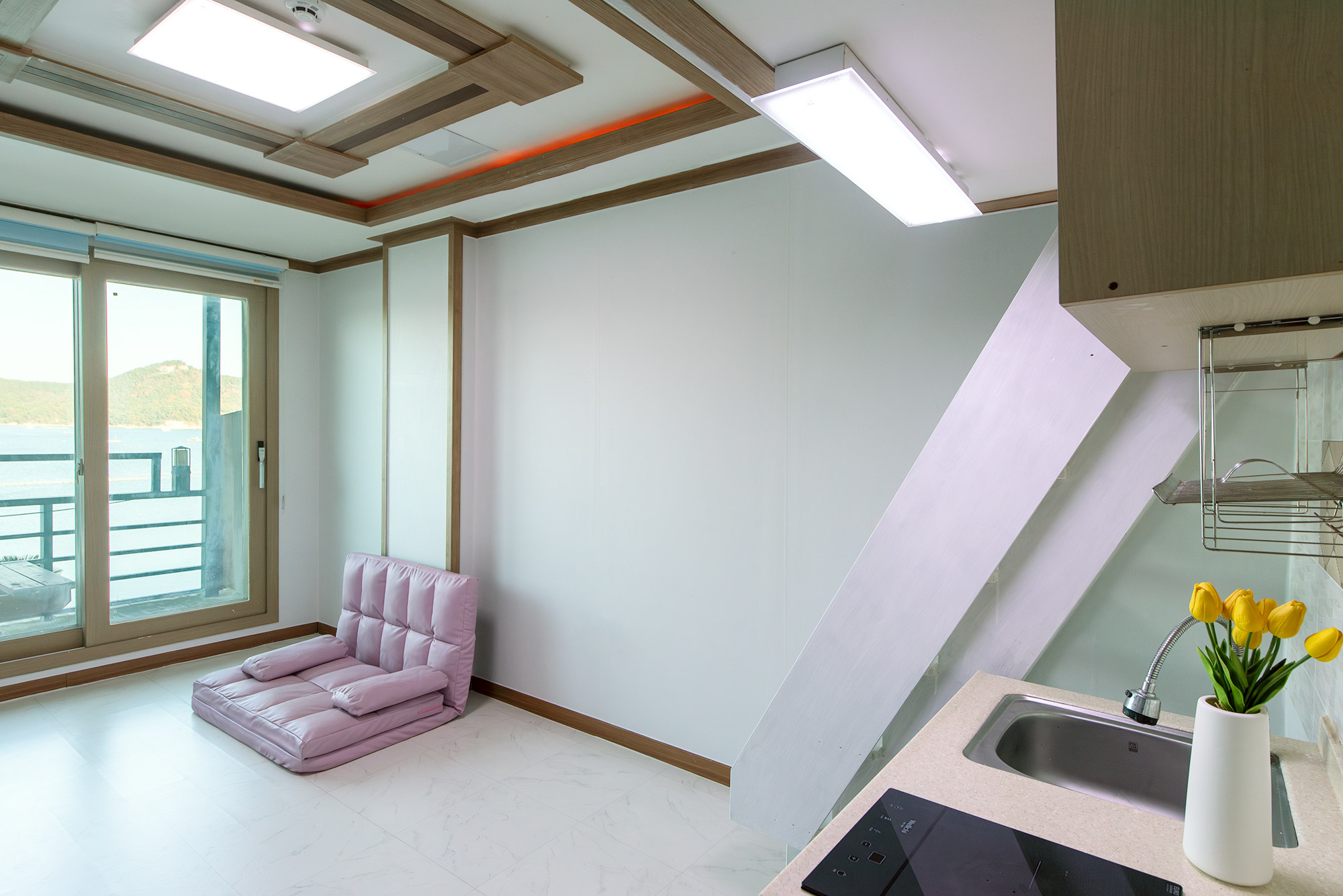 바로앞 바다가 보이는 원룸 형태의 커플형 복층입니다.