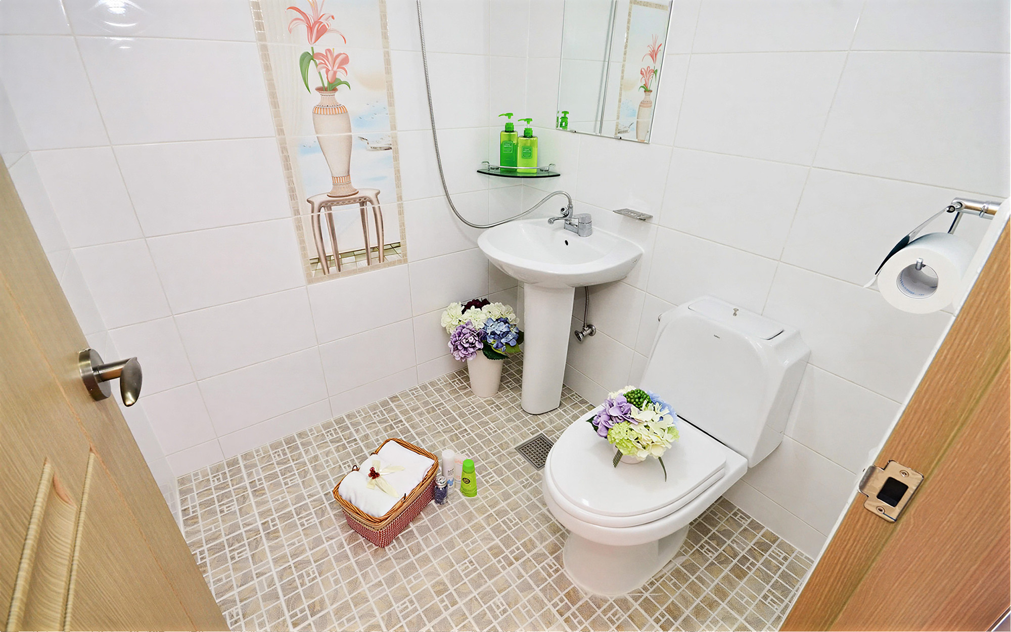 집기시설 : 침대, TV, 식탁, 주방식기류, 냉장고, 인덕션, 전기밥솥, 에어컨, 욕실용품, 옷걸이, 커피포트, 개별테라스